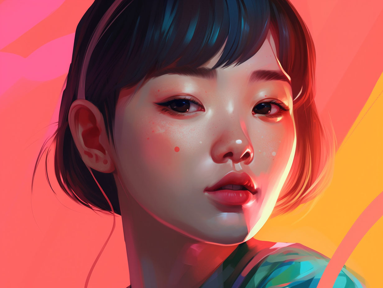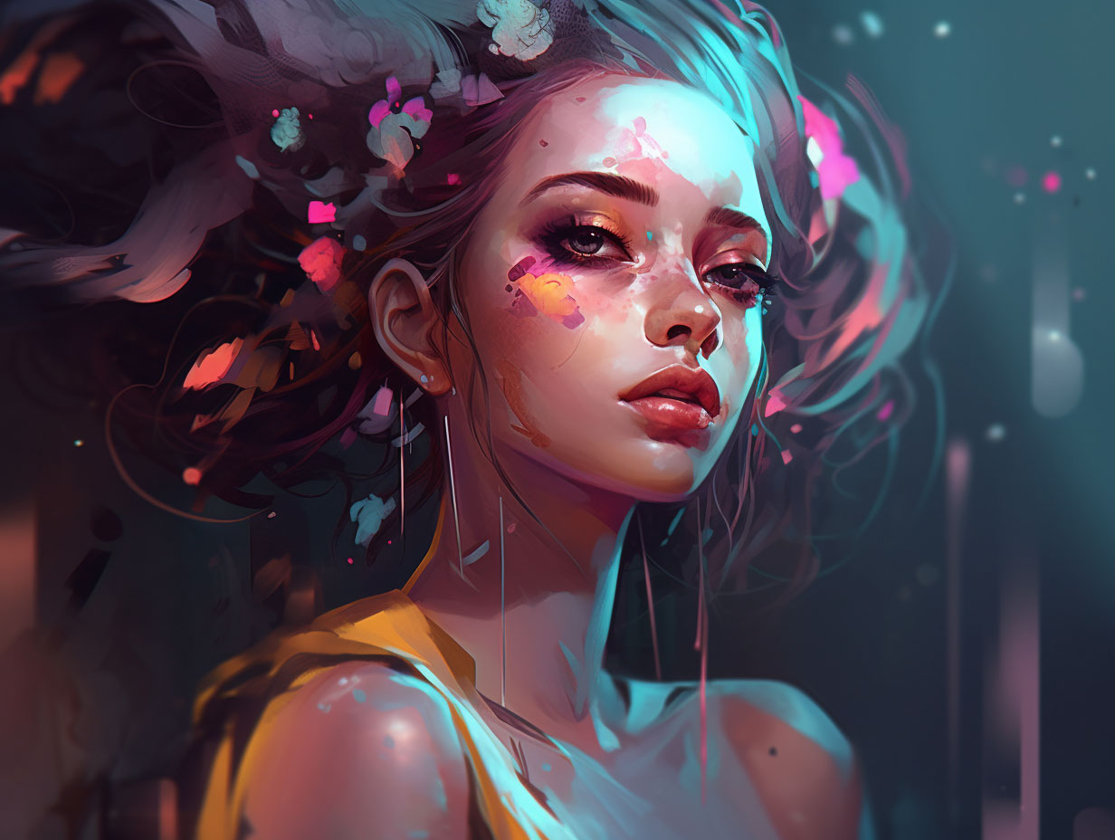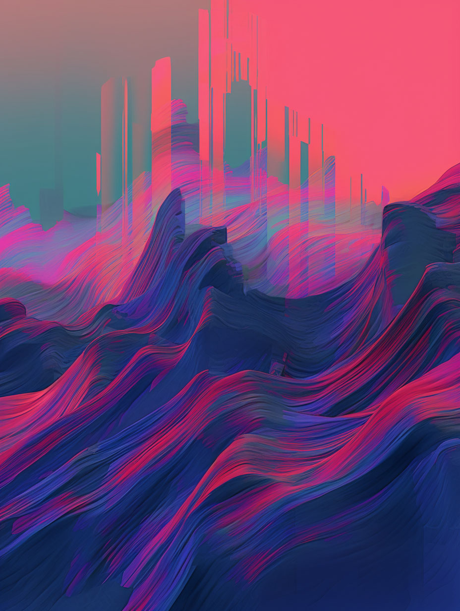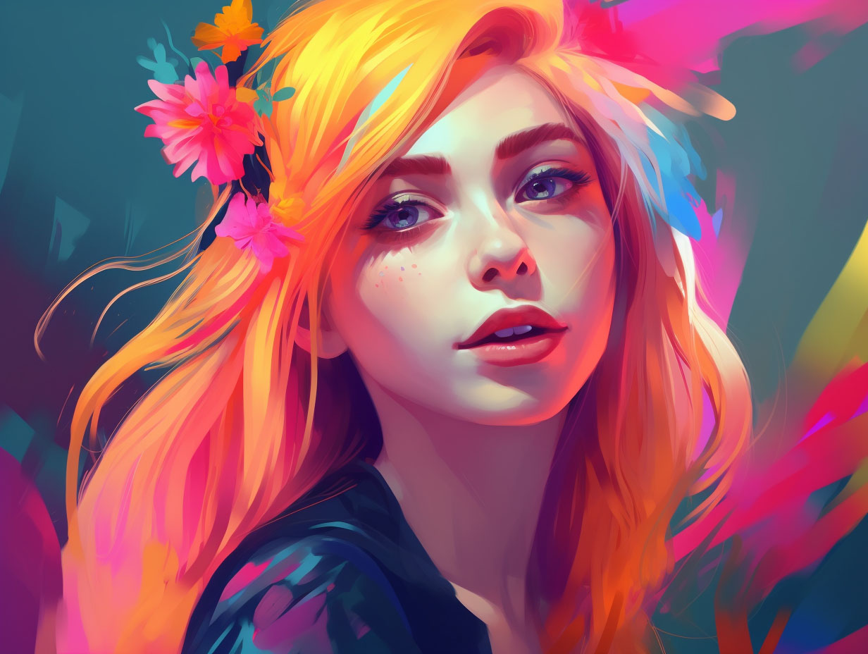 This artwork presents a kaleidoscope of striking colors, from electric blues to incandescent oranges, swirling together in a harmonious and captivating chaos.